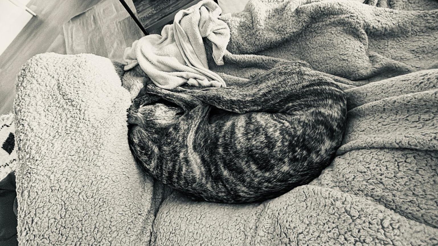 Wenn ich abends auf mein Sofa schaue und sehe, wie sich meine Bonita tiefenentspannt in ihre Decken kuschelt, wie ihre langen Beine im Traum zucken – dann sehe ich nicht nur einen Hund. Ich sehe ein Wunder. Ich sehe eine Seele, die es geschafft hat, dem Schatten zu entkommen.